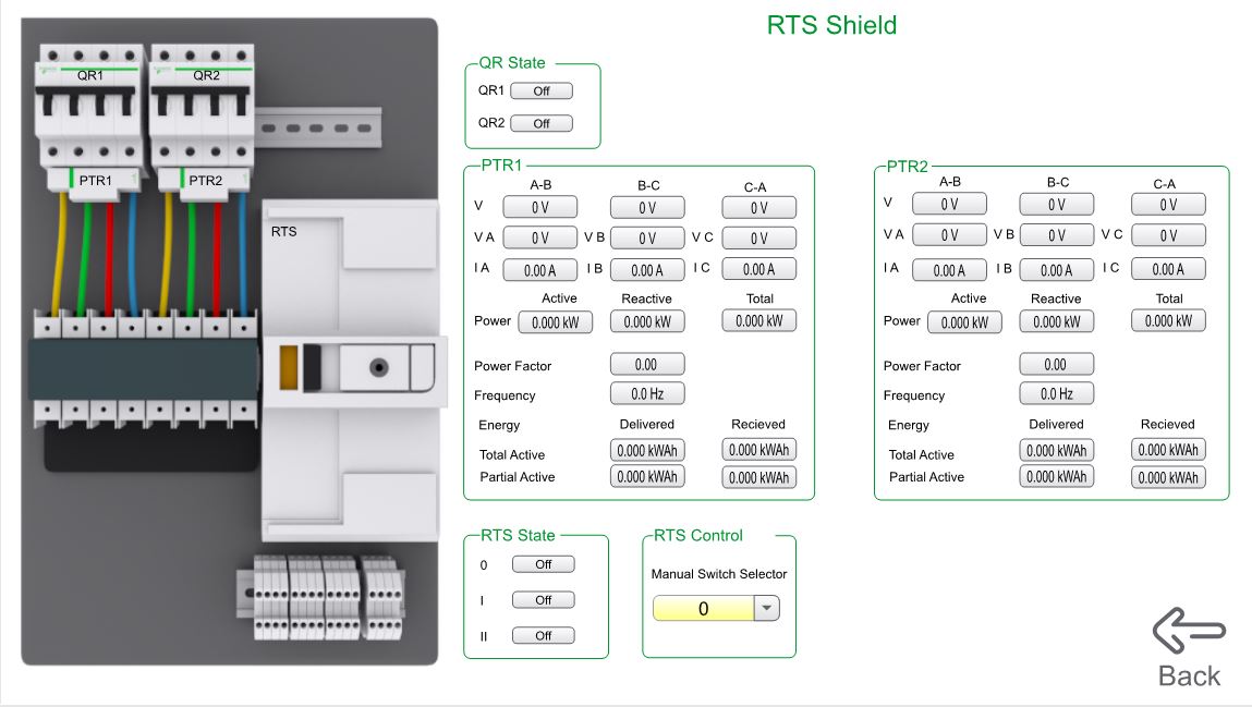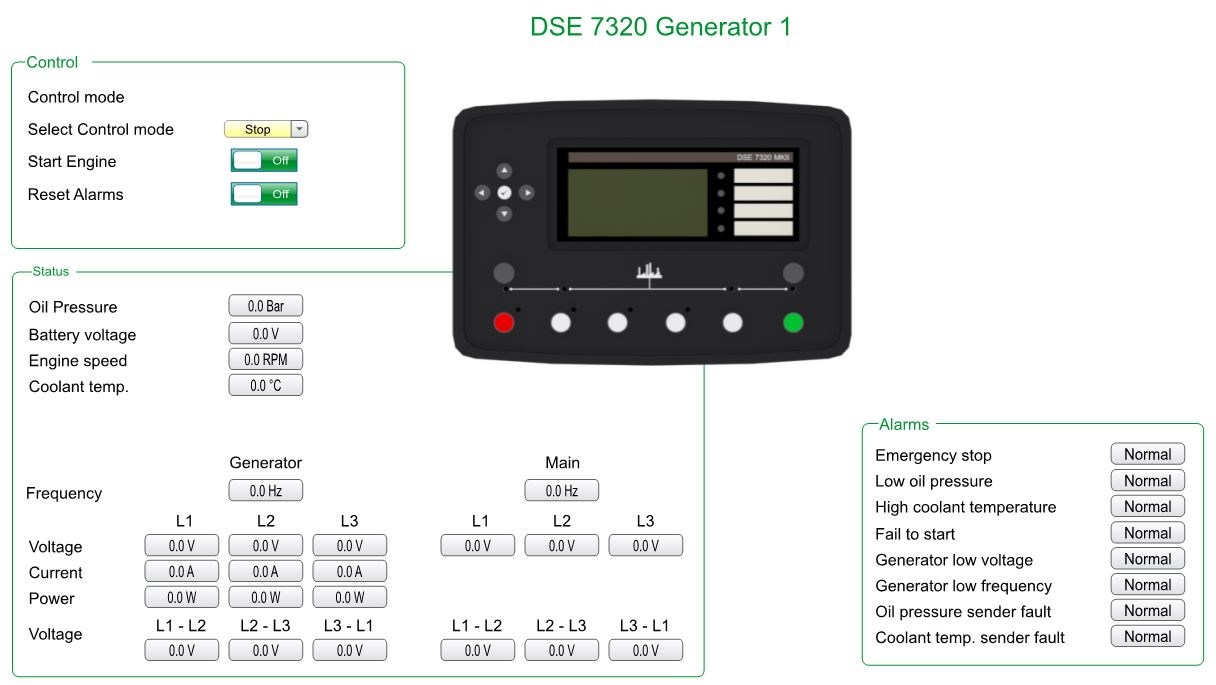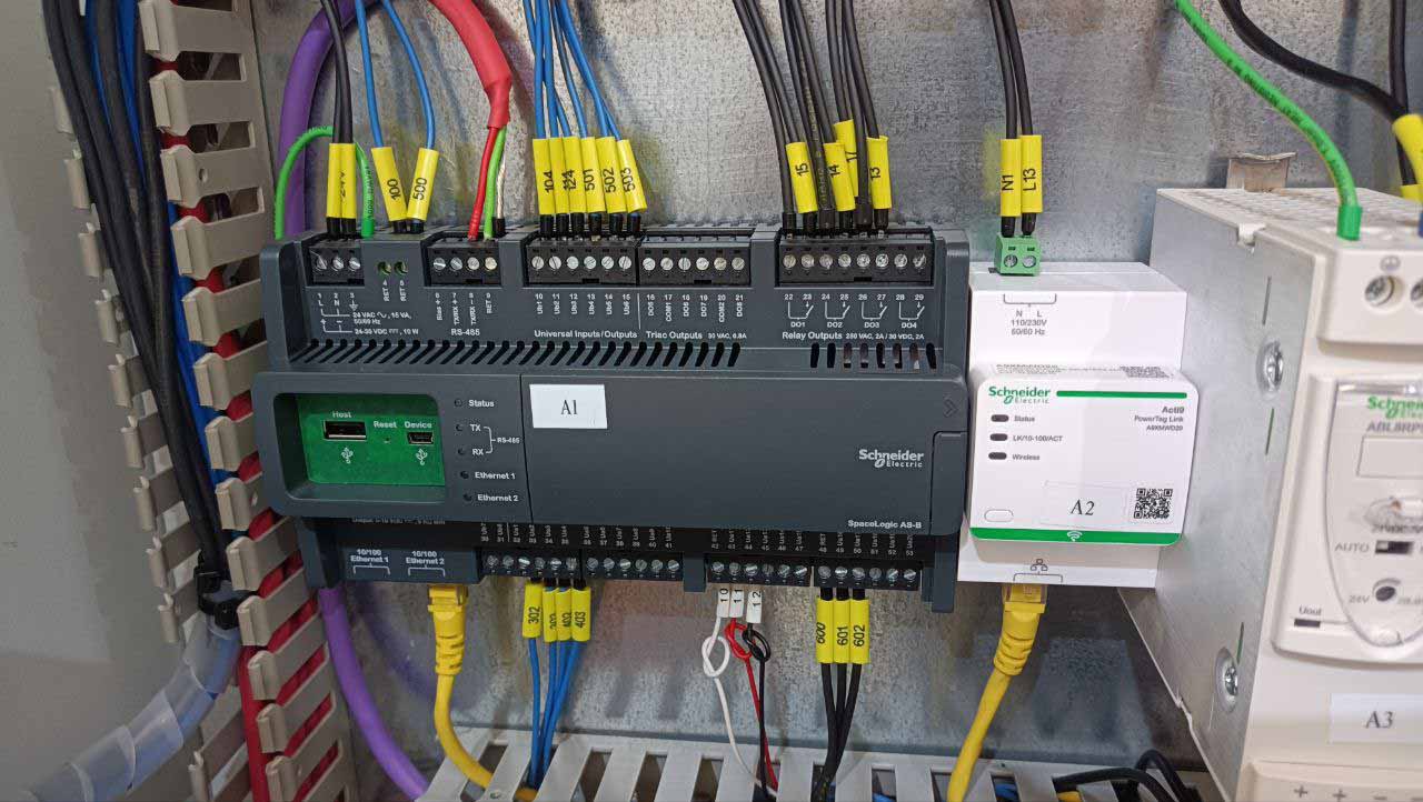 Для управления и коммуникации с двумя дизель-генераторами используется контроллер Modicon M172. Также он управляет жалюзи дополнительного охлаждения в помещении с дизель-генераторами.