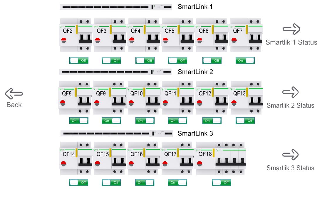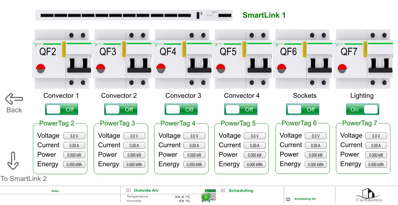 Для управления исполнительными механизмами в здании используется несколько Smart Link, к которым подключено 17 контакторов Reflex.