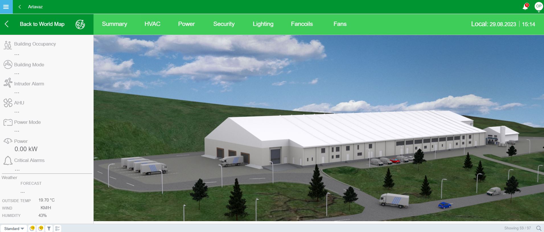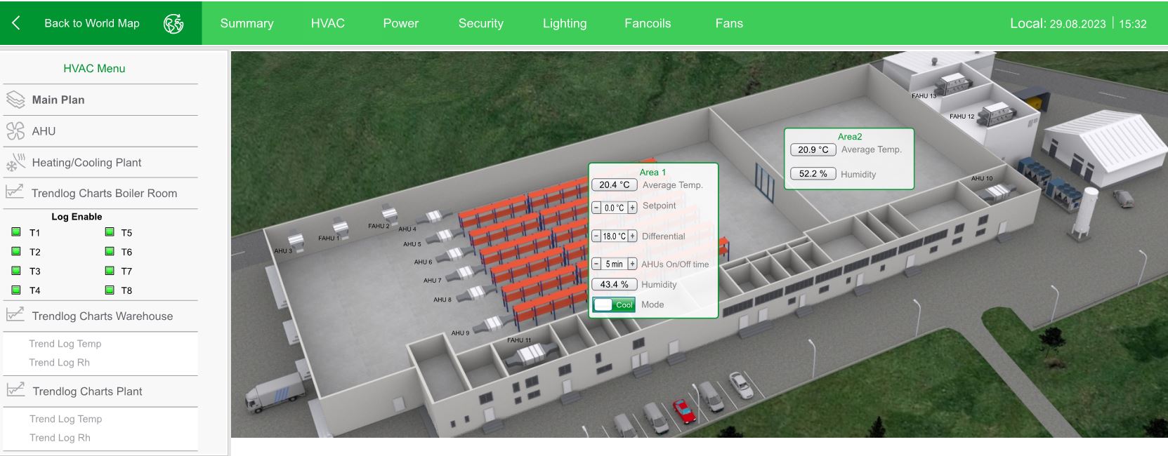 Выполнена автоматизация систем отопления, охлаждения и вентиляции, управление освещением, управление энергосбережением.